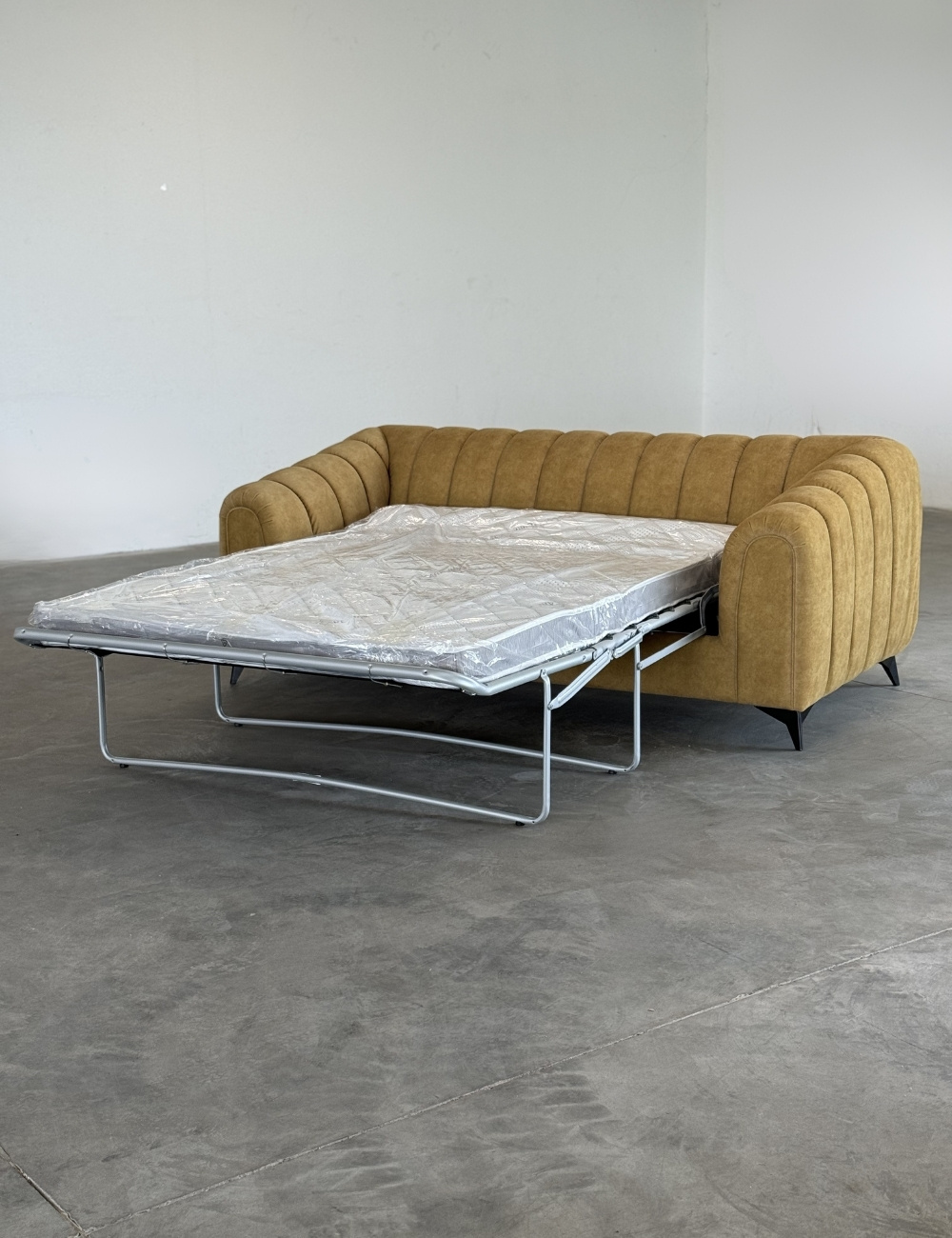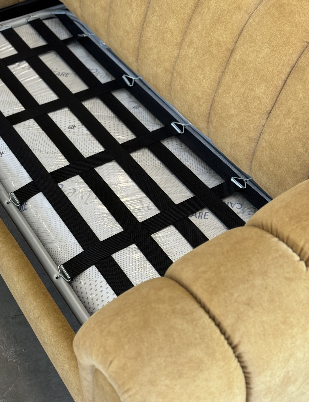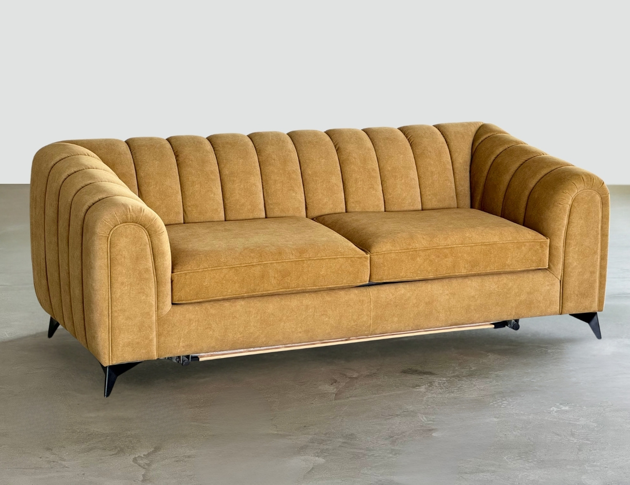 Kanapa Majorka łączy elegancki design z funkcjonalnością. Szerokie siedzisko i zaokrąglone kształty zapewniają komfortowy wypoczynek, a piankowe wypełnienie gwarantuje odpowiednie podparcie. Dzięki funkcji spania (180 × 135 cm) kanapa łatwo przekształca się w wygodne łóżko, oferując dodatkową przestrzeń do snu.