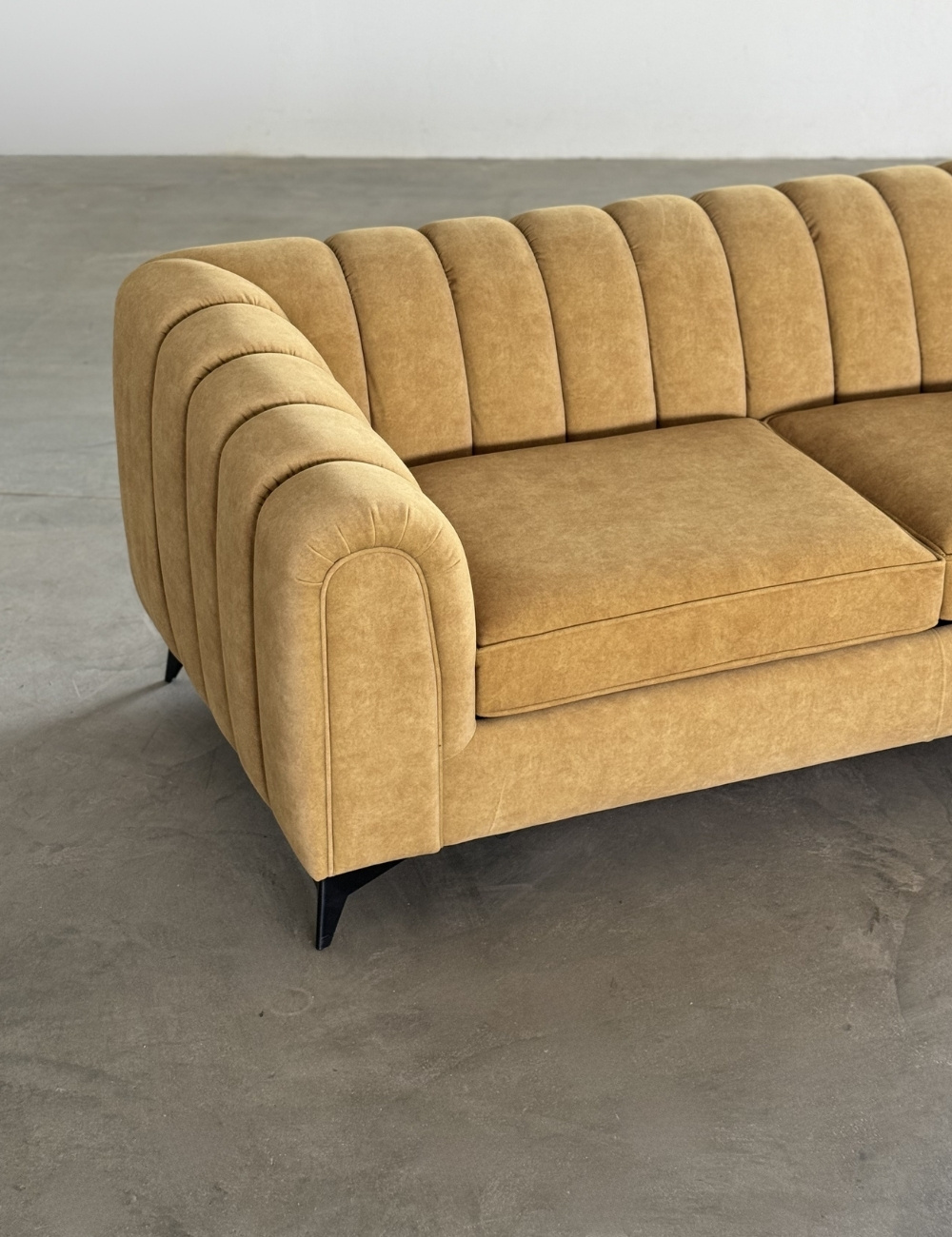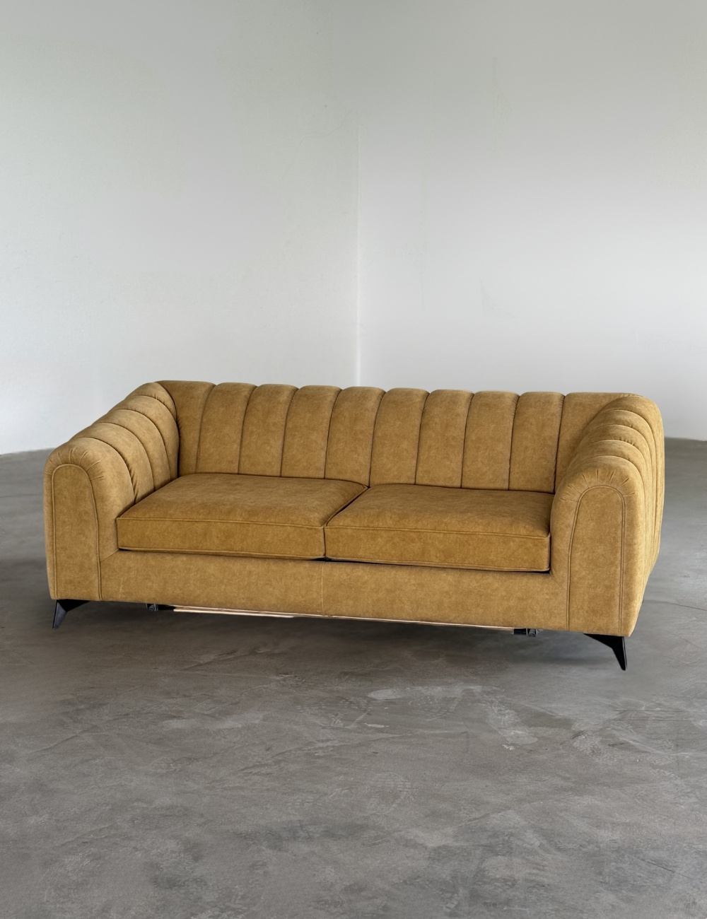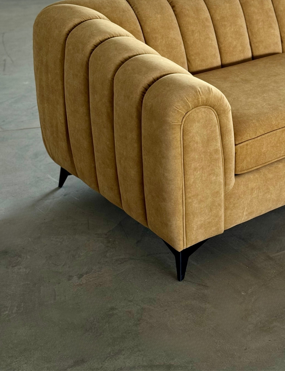 Kanapa Majorka łączy elegancki design z funkcjonalnością. Szerokie siedzisko i zaokrąglone kształty zapewniają komfortowy wypoczynek, a piankowe wypełnienie gwarantuje odpowiednie podparcie. Dzięki funkcji spania (180 × 135 cm) kanapa łatwo przekształca się w wygodne łóżko, oferując dodatkową przestrzeń do snu.