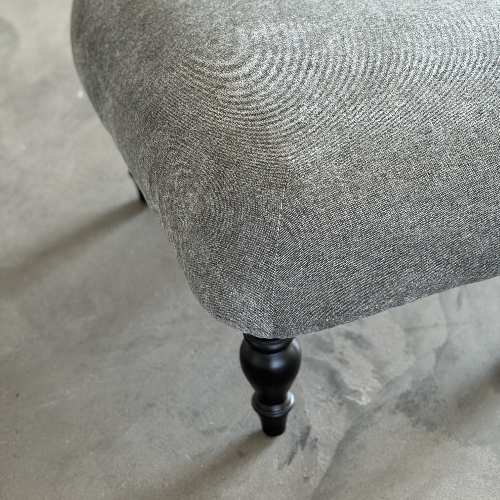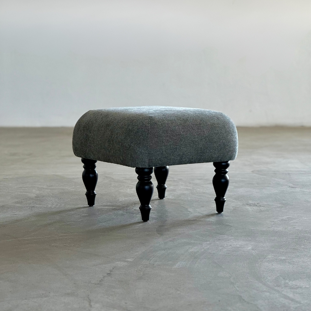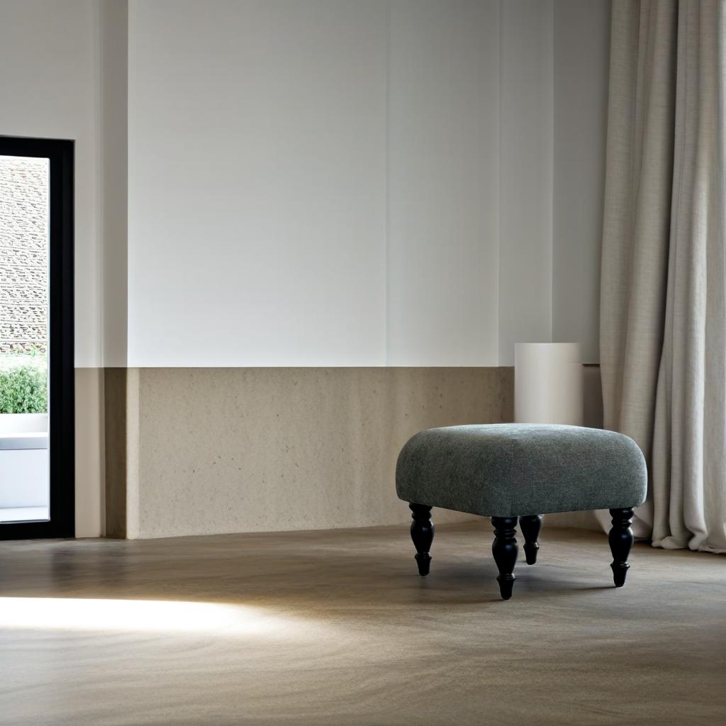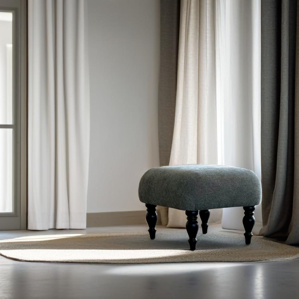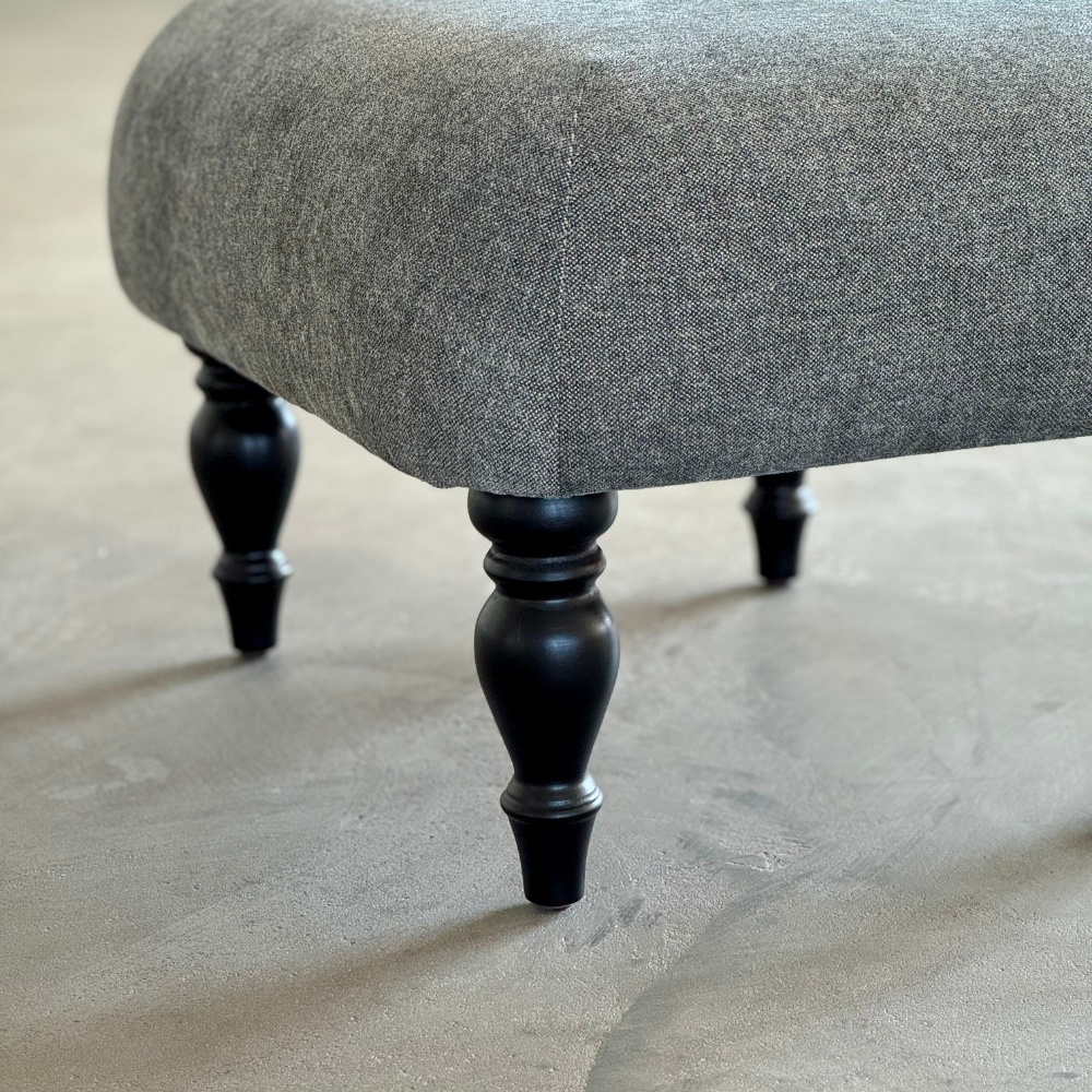 Podnóżek Arche to doskonałe połączenie klasyki i współczesnego designu. Jego zaokrąglone, tapicerowane siedzisko w stonowanym odcieniu szarości zapewnia wygodę i elegancki wygląd, a toczone drewniane nogi w głębokim, czarnym wykończeniu dodają mu wyrafinowanego charakteru. Arche sprawdzi się nie tylko jako podnóżek do fotela czy sofy, ale również jako niska ławka do przedpokoju, stolik pomocniczy czy dekoracyjny akcent w salonie lub sypialni.