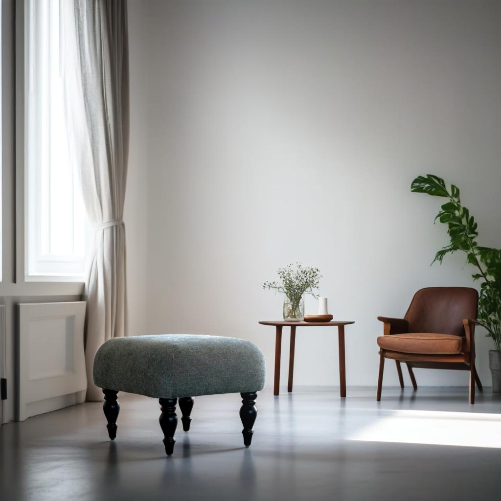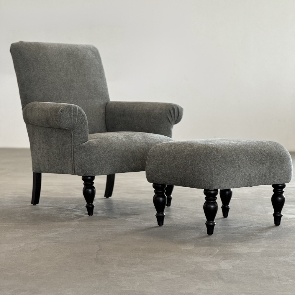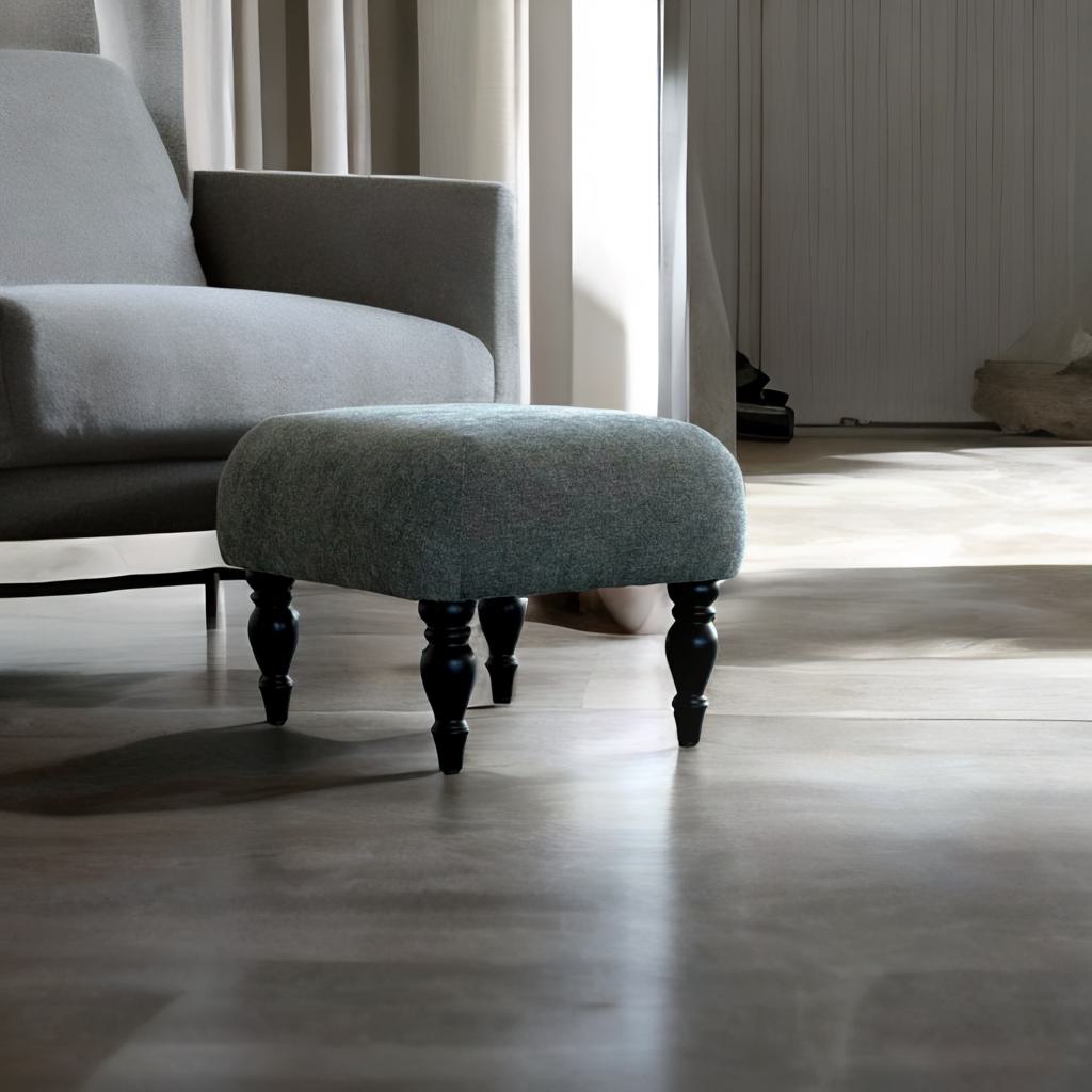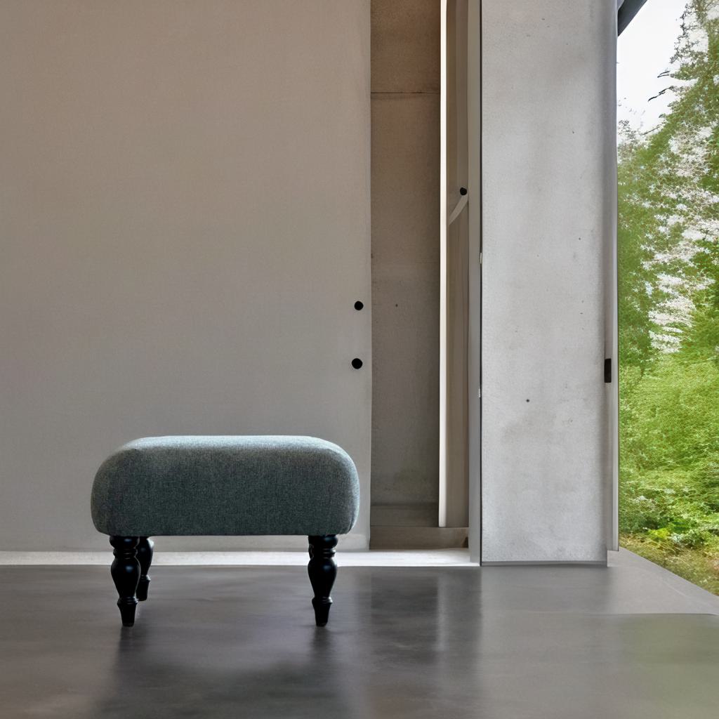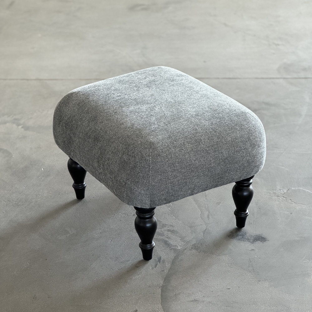 Podnóżek Arche to doskonałe połączenie klasyki i współczesnego designu. Jego zaokrąglone, tapicerowane siedzisko w stonowanym odcieniu szarości zapewnia wygodę i elegancki wygląd, a toczone drewniane nogi w głębokim, czarnym wykończeniu dodają mu wyrafinowanego charakteru. Arche sprawdzi się nie tylko jako podnóżek do fotela czy sofy, ale również jako niska ławka do przedpokoju, stolik pomocniczy czy dekoracyjny akcent w salonie lub sypialni.
